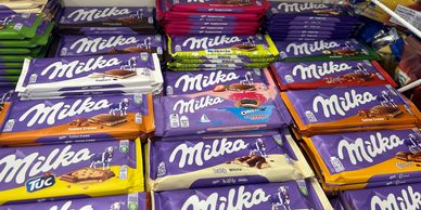 Numerous types of imported chocolate bars!